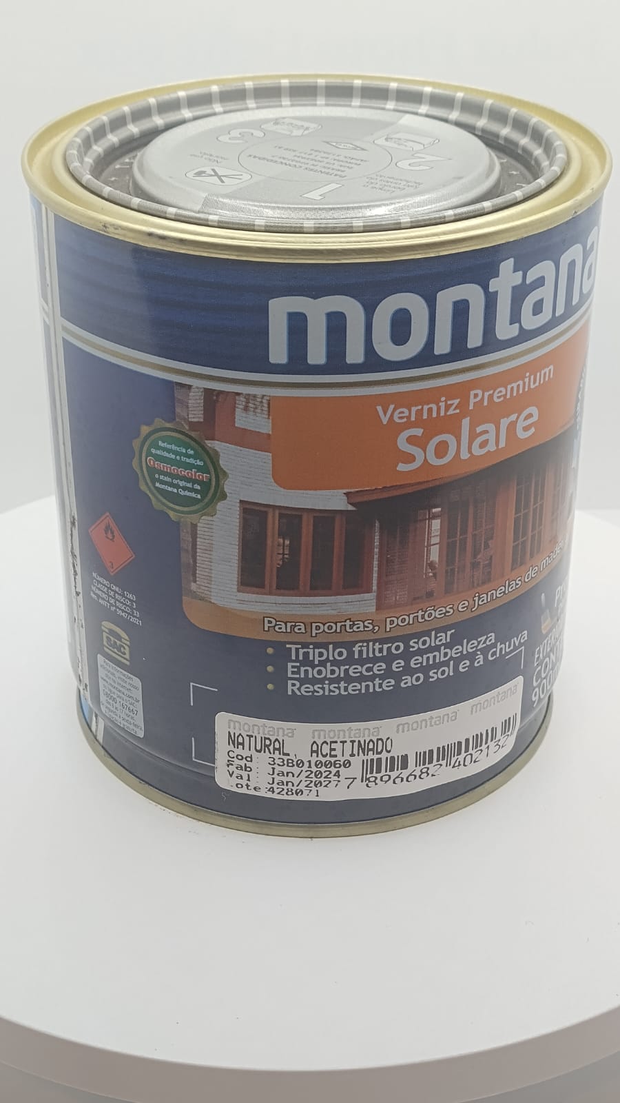 Verniz Premium Solare Natural Acetinado da Montana é um verniz transparente de alta qualidade, desenvolvido com resinas à base de poliuretano modificadas e um sistema de triplo filtro solar. Ele é especialmente indicado para proteger, enobrecer e embelezar superfícies de madeira em áreas internas e externas, como portas, portões e janelas.